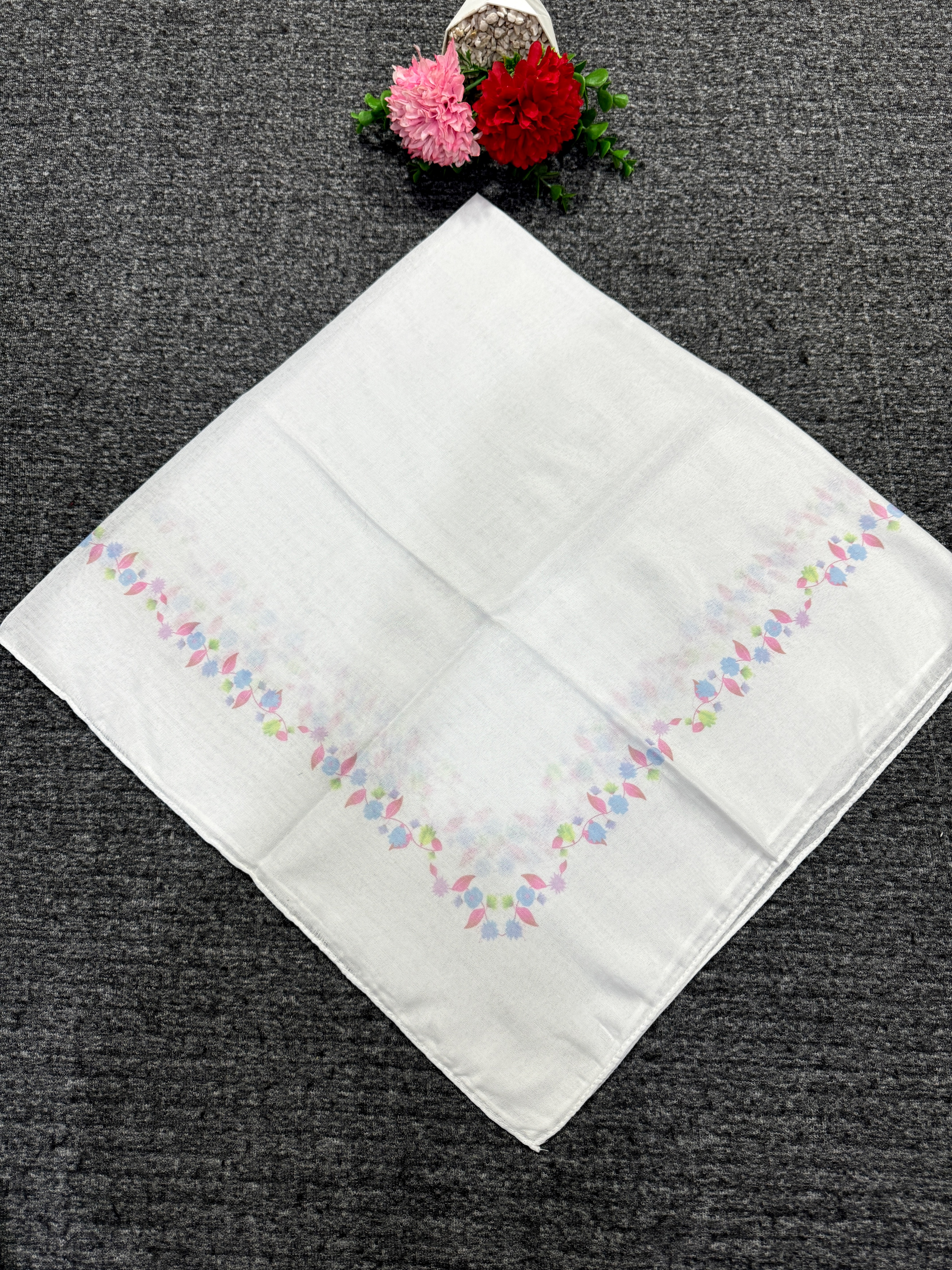 روسری سفید طرحدار و گلدار در دو سایز ۱ متری و ۱۲۰ موجود